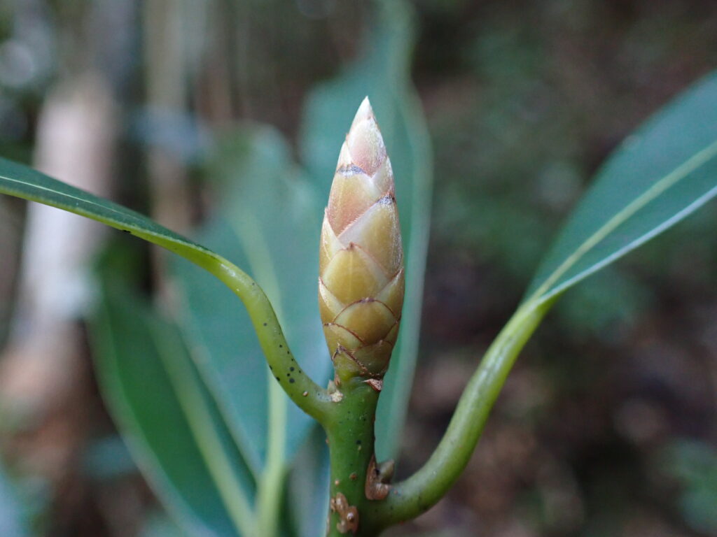 - アオガシ(Machilus japonica):葉裏の側脈はあまり隆起しない、冬芽(葉芽)は卵形。