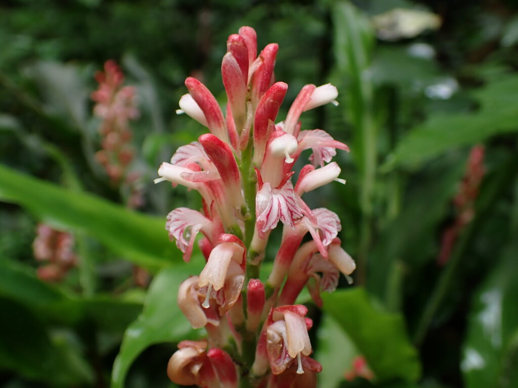 - ゲットウ(Alpinia zerumbet):高さ200-300cm、葉の両面は無毛、花軸は有毛。九州南部~琉球に分布。
