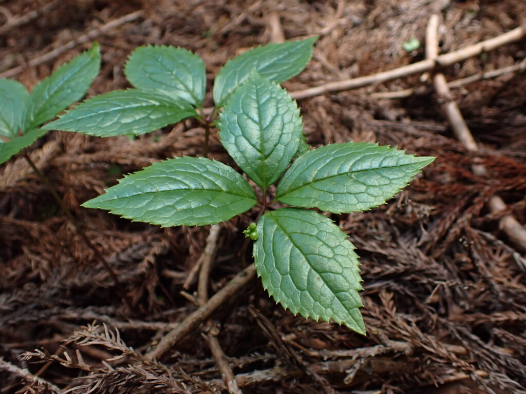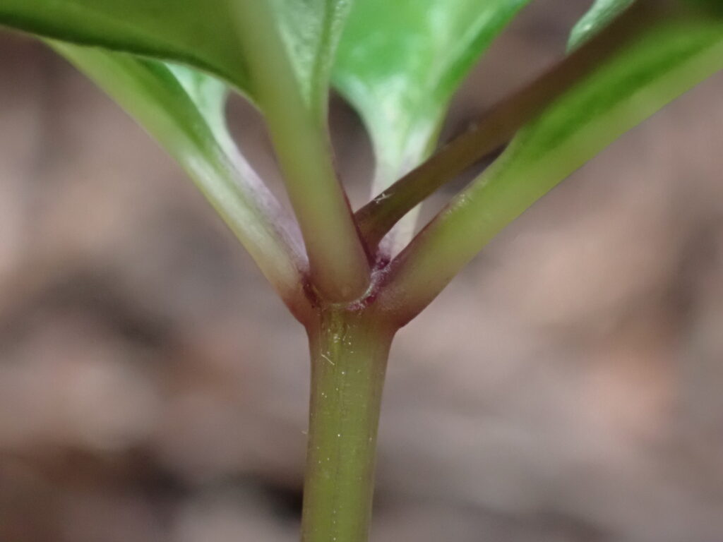 - フタリシズカ(Chloranthus serratus):上部の葉の節間は明瞭。