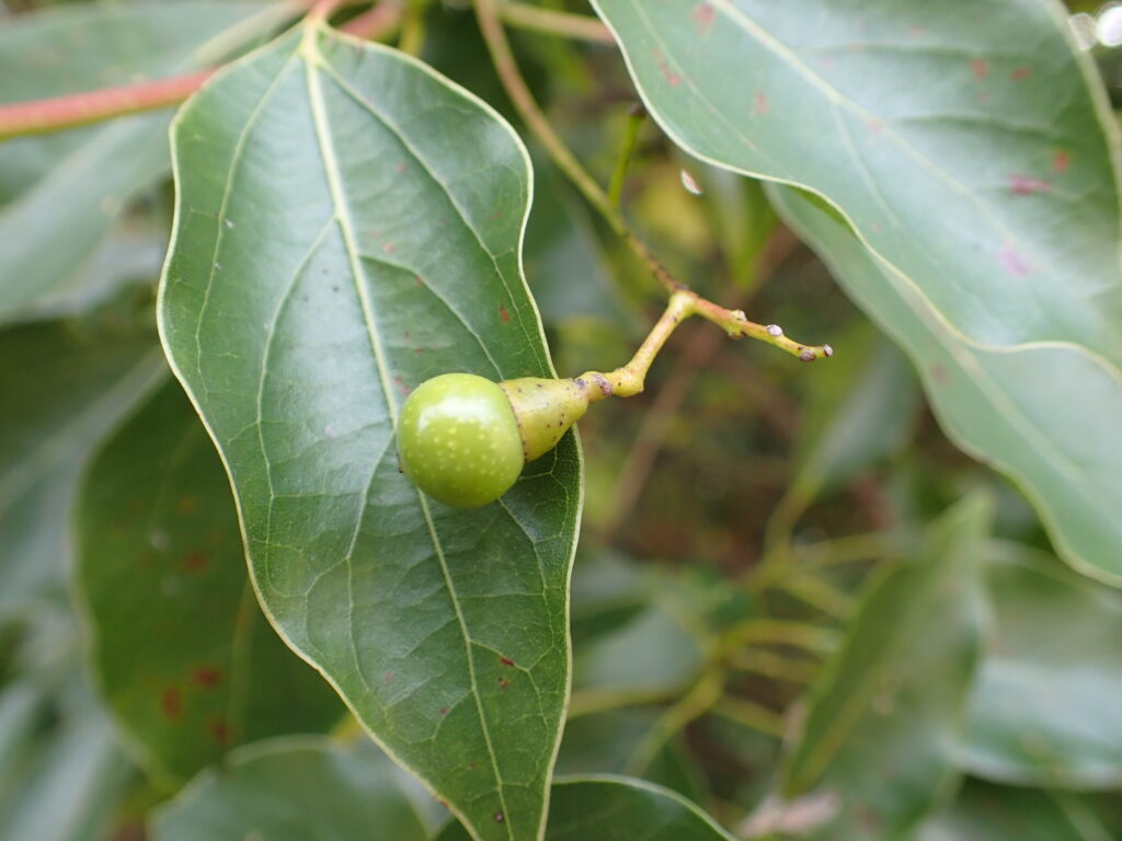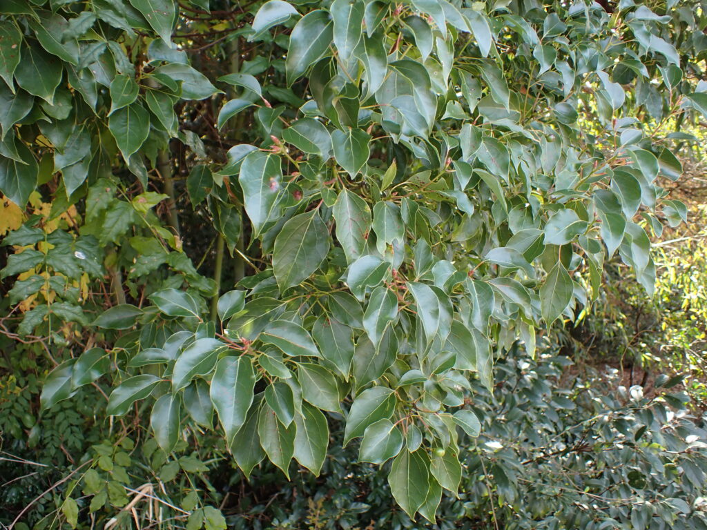 - イヌガシ(Neolitsea aciculata):葉は倒卵状長楕円形で葉脈は3行脈、花は春咲きで暗紅色。