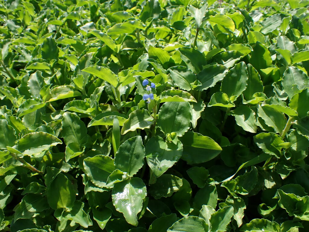 - カロライナツユクサ(Commelina caroliniana):花は小さく下方の花弁は青色。