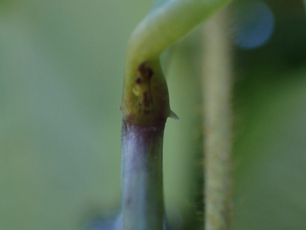 - キクバドコロ(Dioscorea septemloba var. septemloba):葉柄基部に小突起はない。