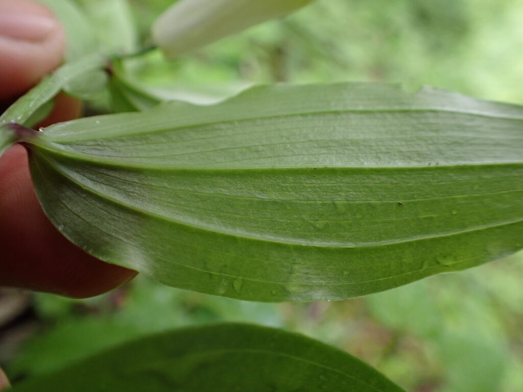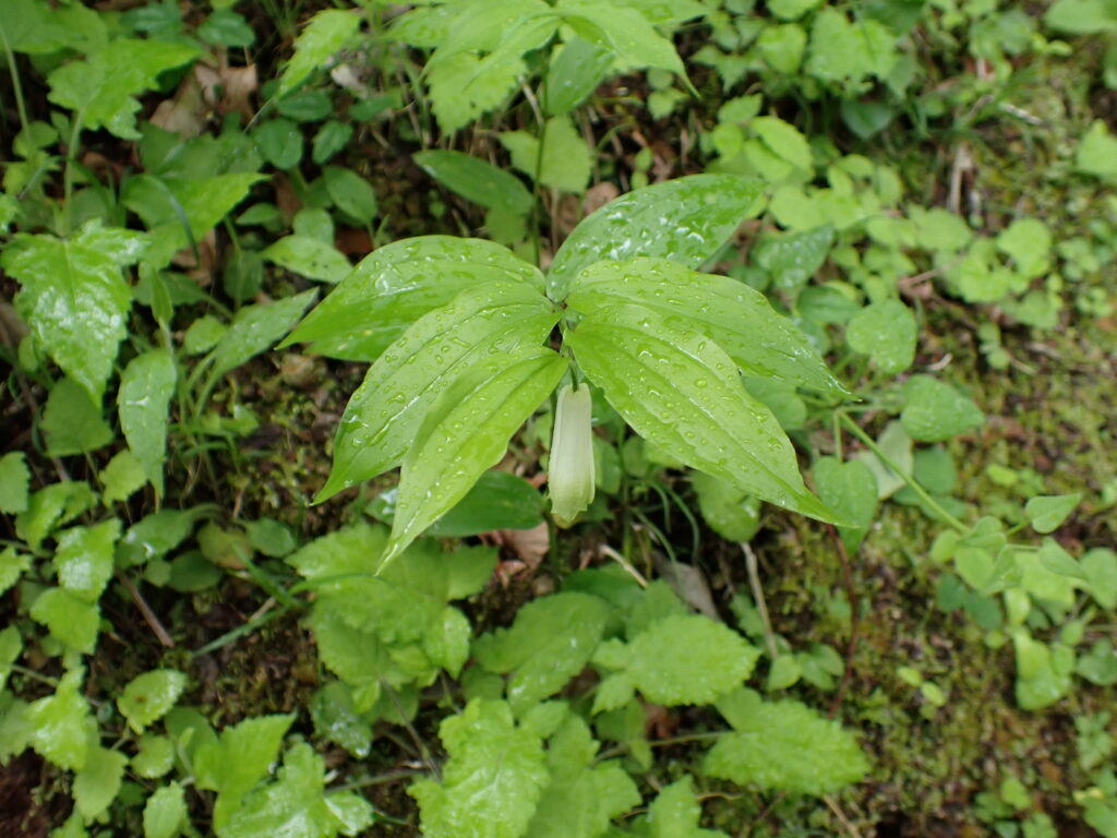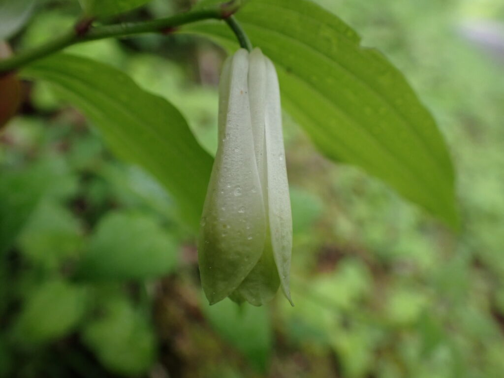 - チゴユリ(Disporum smilacinum):花は白色で平開。