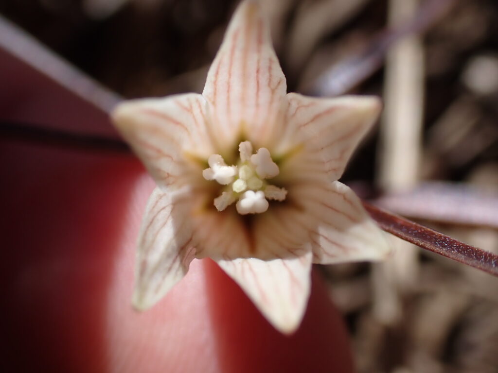 | 花 | 鐘状筒形・花被片は長さ14-25mm・網目模様はなく条線がある・葯はクリーム色 | ||