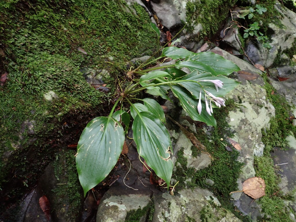 - オモトギボウシ(Hosta sieboldii var. sieboldii ‘Rohdeifolia’):コバギボウシと同一種?近畿地方~中国地方に分布。