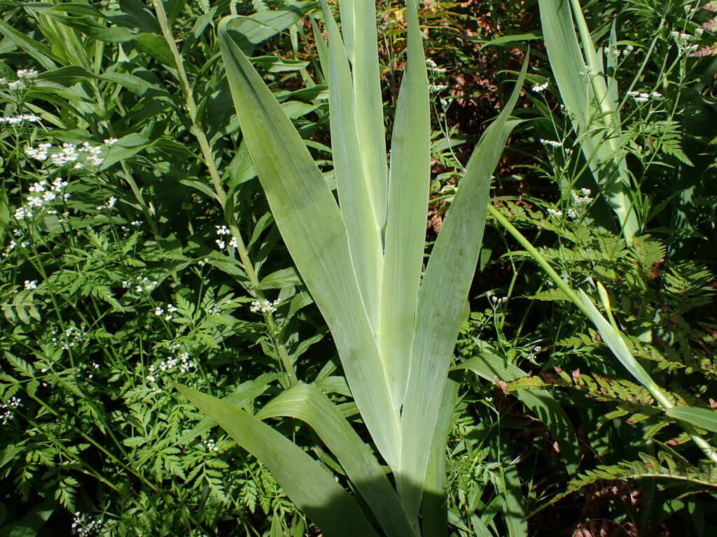 | 葉 | 広剣状で長さ30-50cm、幅2-4cm・緑色で粉白帯びる | ||