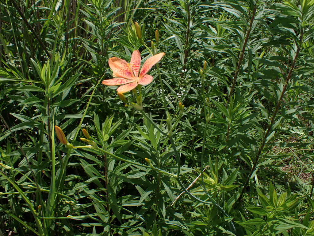 | 花 | 総状花序・橙色で径3-4cm・花被片に暗赤色の斑点がある | ||