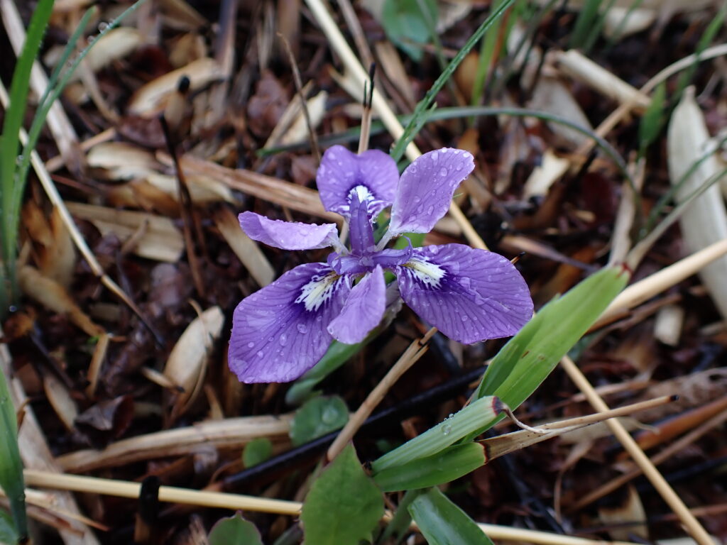 | 花 | 花茎の先に1個つく・青紫色で径4cm・外花被片の基部に黄色と白色の斑紋がある | ||