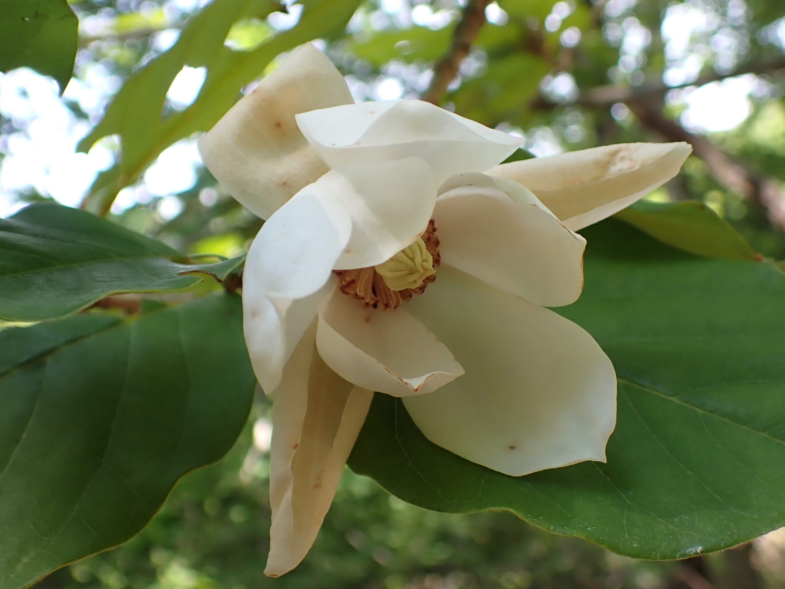 - ウケザキオオヤマレンゲ(Magnolia x wieseneri):オオバオオヤマレンゲとホオノキの雑種で花は上向きに咲く。