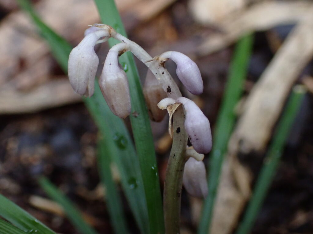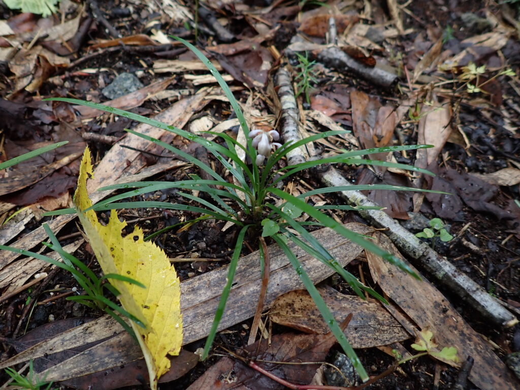 - ヒメヤブラン(Liriope minor):匍匐枝を伸ばす、葉は幅2-3mm、花茎に狭い翼、3-17花。