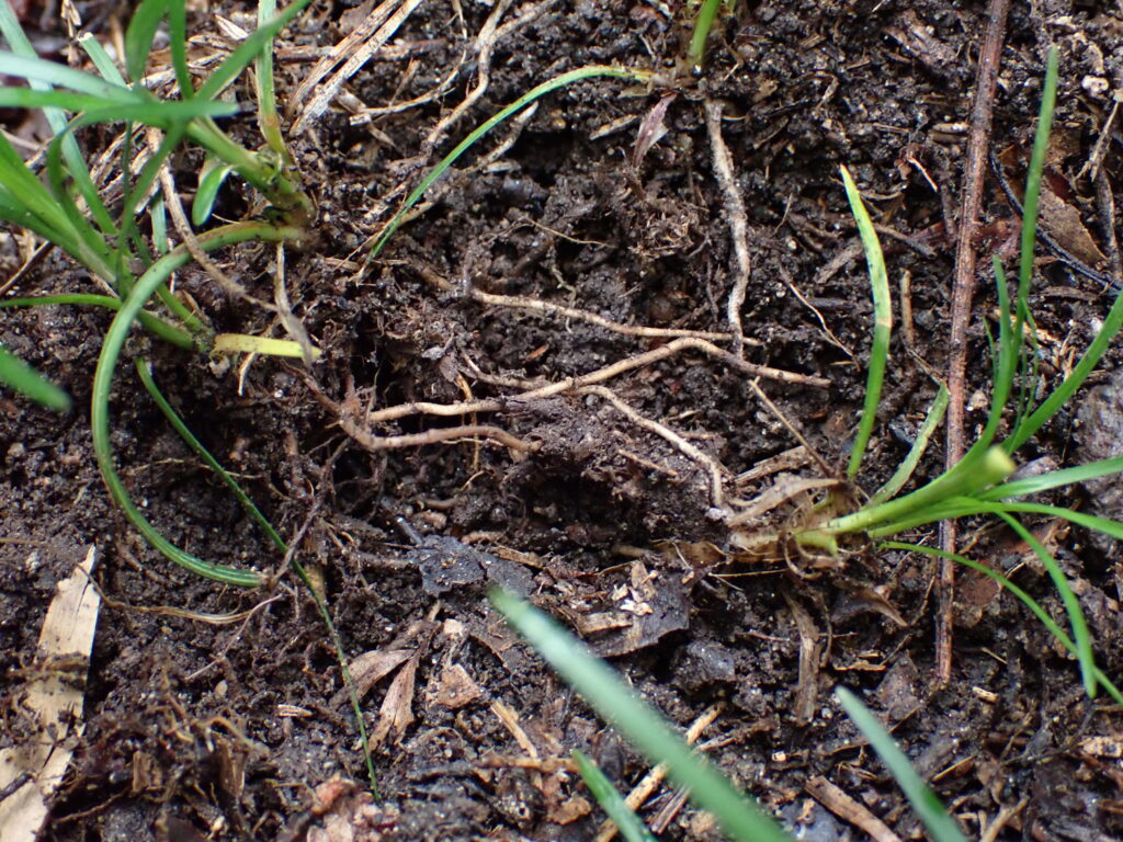 - ナガバジャノヒゲ(Ophiopogon japonicus var. umbrosus):匍匐枝はあっても長さ3cm程度、根茎は3-7回分枝。