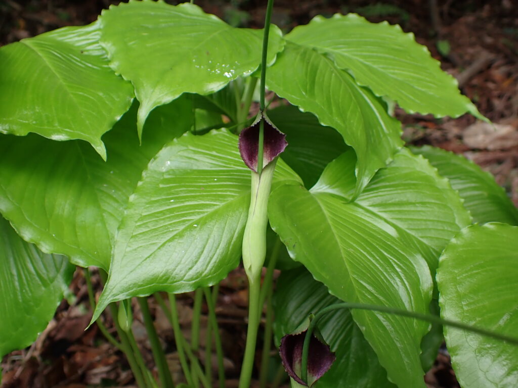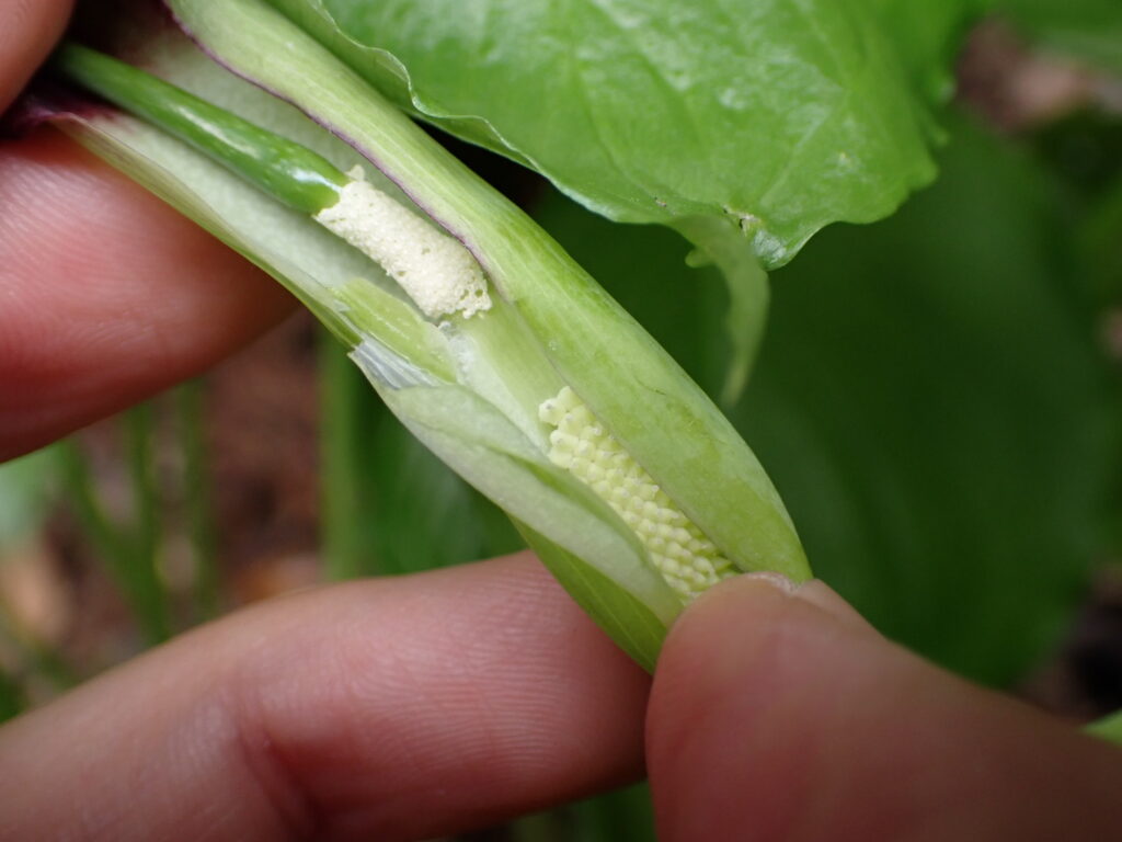 - オオハンゲ(Pinellia tripartita):仏炎苞外面と内面は緑色。