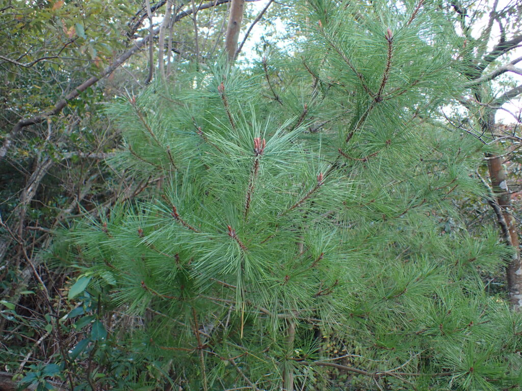 - リュウキュウマツ(Pinus luchuensis):樹皮は灰黒色で葉の長さは10-20cm、樹脂道は下表皮に接しないものがある。トカラ列島以南に分布。(大分県未確認)