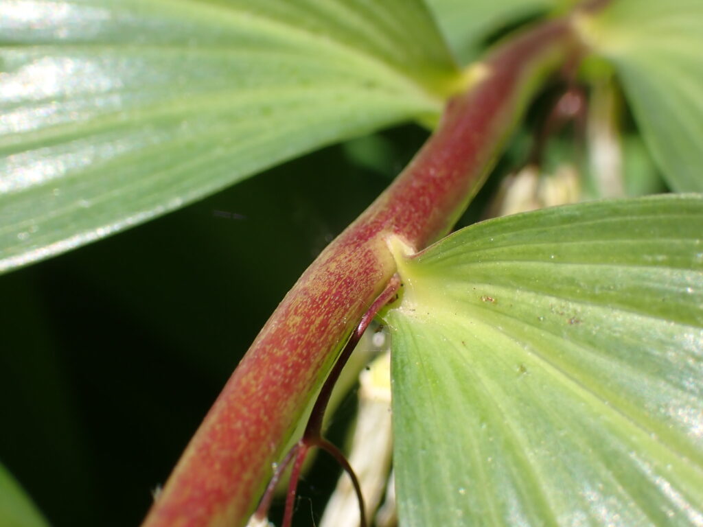 - ミヤマナルコユリ(Polygonatum lasianthum):花糸は有毛、茎に線条がある、葉の脈沿いは白くならない。