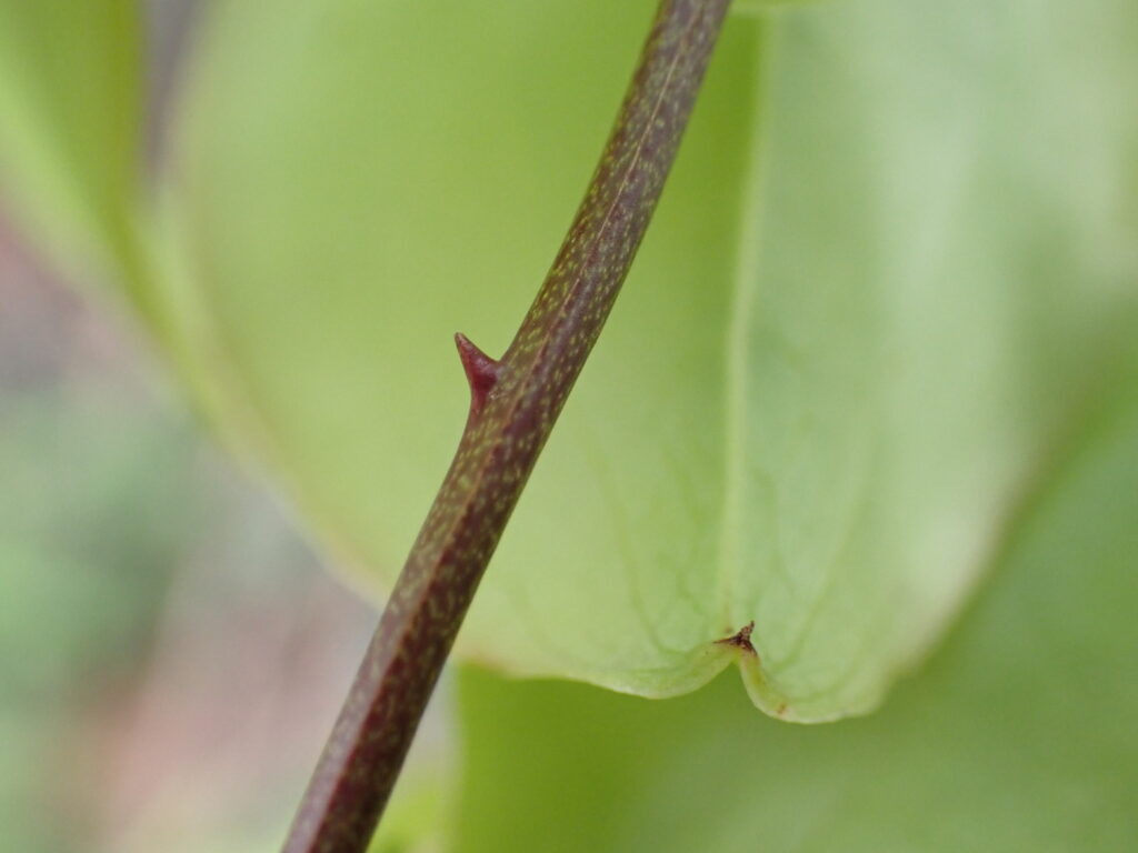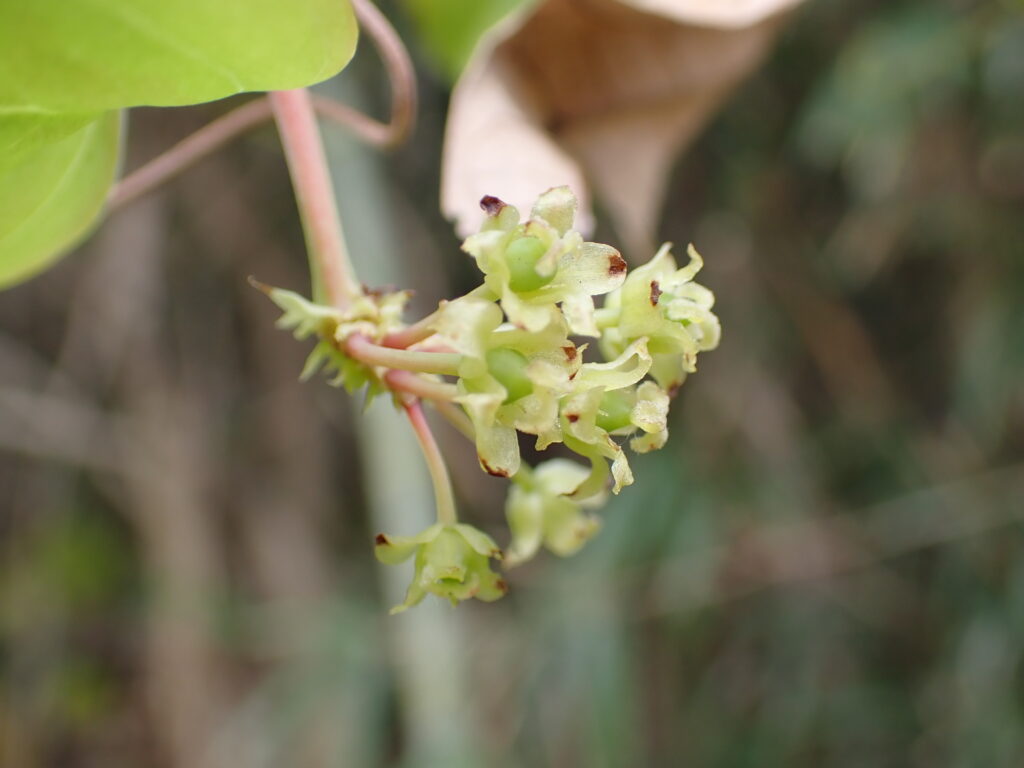 - マルバサンキライ(Smilax stans):茎に稜角があり刺はない、液果は黒色に熟す。