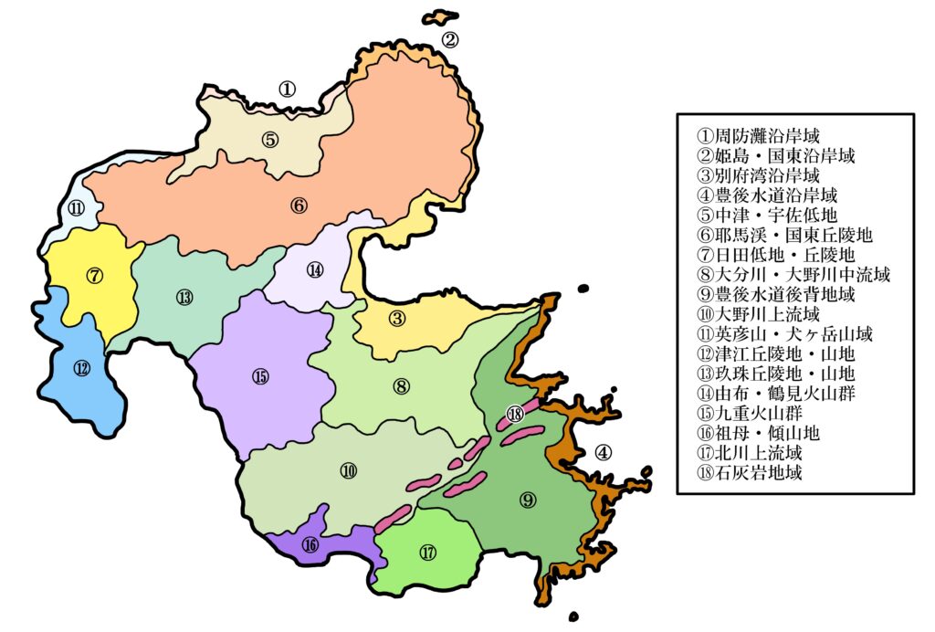 大分県野生植物地域区分図(荒金1998)