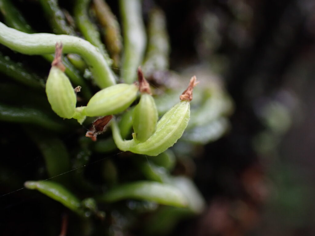 | 花 | 総状花序・淡緑白色で1-3個つく・萼片は卵状披針形で長さ2mm・唇弁は舟形で長さ1.5mm・距は楕円体 | ||